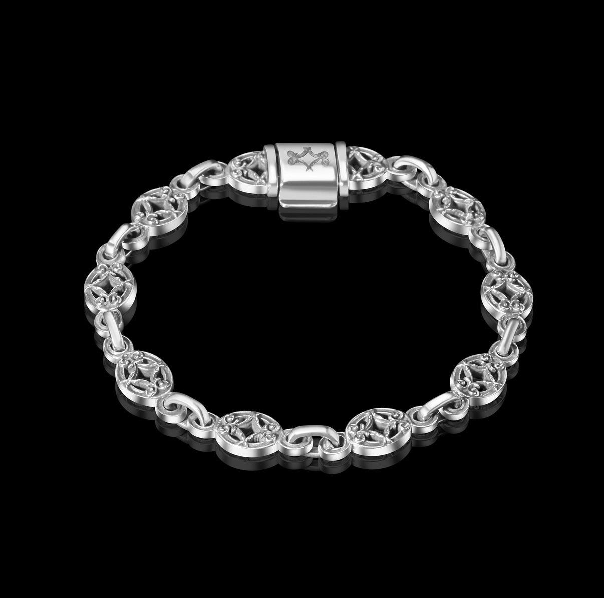 VALI's medium weight bracelet, the10mm motif link. Handcrafted in Los Angeles in premium .925 sterling silver.