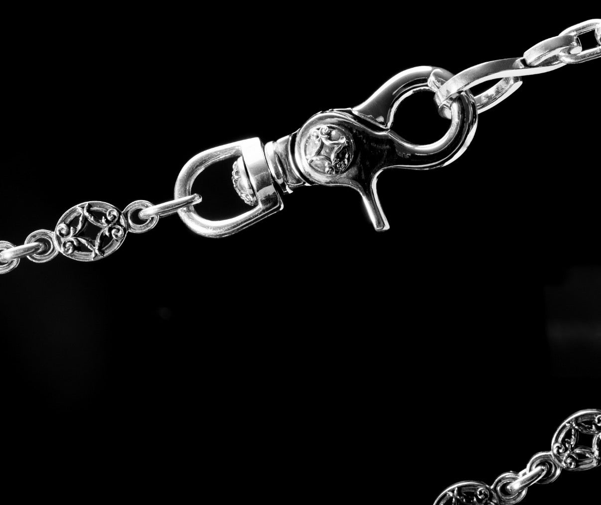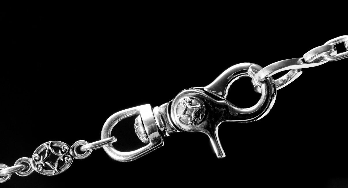 VALI's 15mm motif wallet chain. Handcrafted in Los Angeles in premium .925 sterling silver. Wallet chain pictured is 23 Inch (weight 130g).
